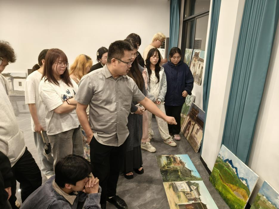 写生是一个循序渐进的过程,同学们白天在老师的带领下,尽情享受户外写生的乐趣,深入探索富川的自然风光与人文景观。夜晚的习作讲评则是检验和反哺教学不可或缺的必要环节,美术学院的教师们认真负责地对每一位同学的画作进行讲评、逐一细化并给予示范指导,确保每位学生都能从中受益。