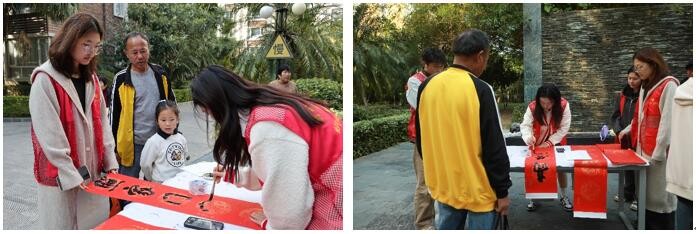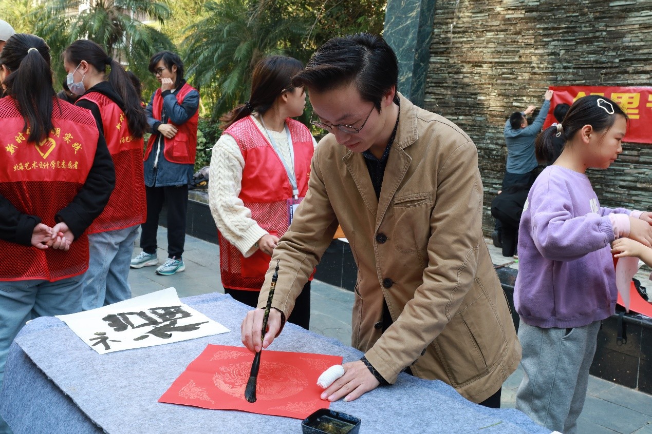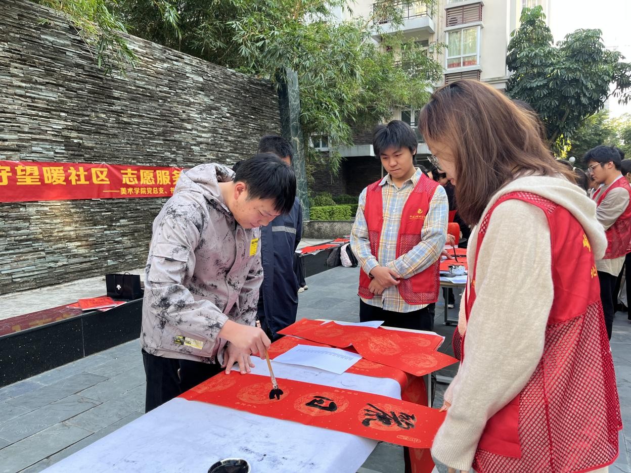 1221日,正值冬至,由美术学院党总支、书法学院党支部、北艺书法协会联合举办的创城活动——“邻里守望暖社区,志愿服务我先行”在橄榄苑小区顺利举行。本次活动旨在通过志愿服务的形式,为社区居民提供切实的帮助,增进邻里之间的交流。活动内容丰富多样,包括写春联、送春联、书法教学、清理社区垃圾等活动。