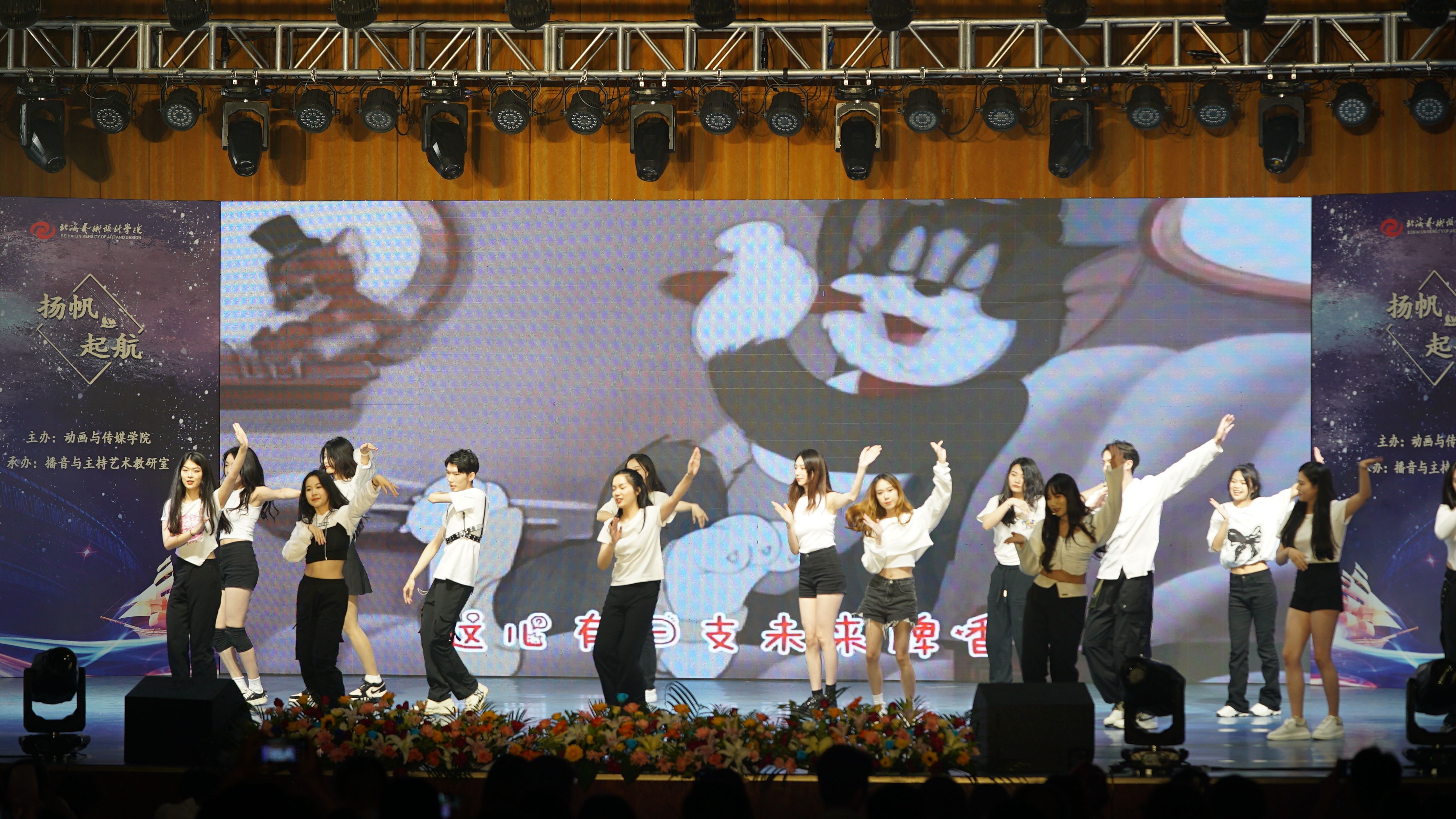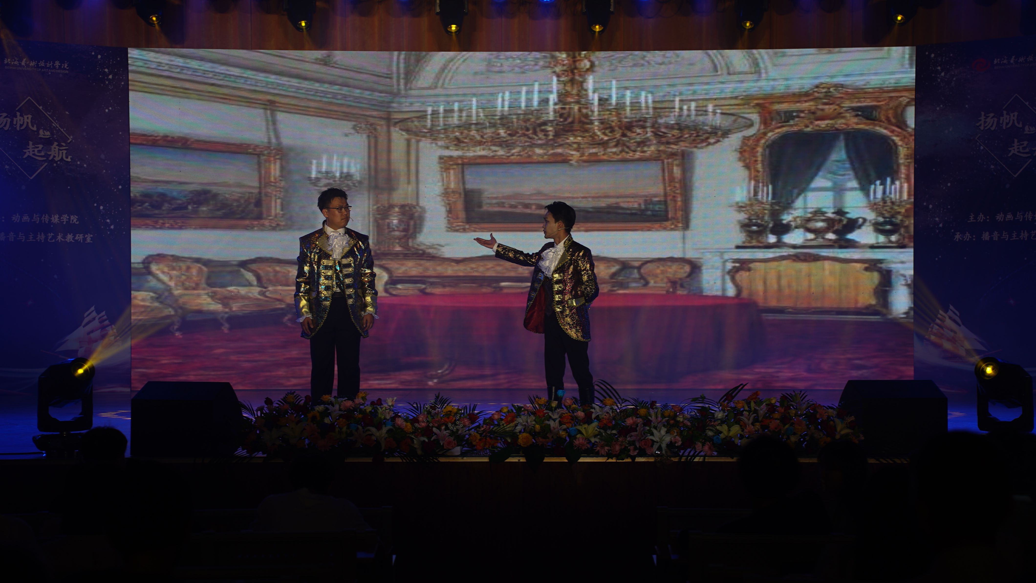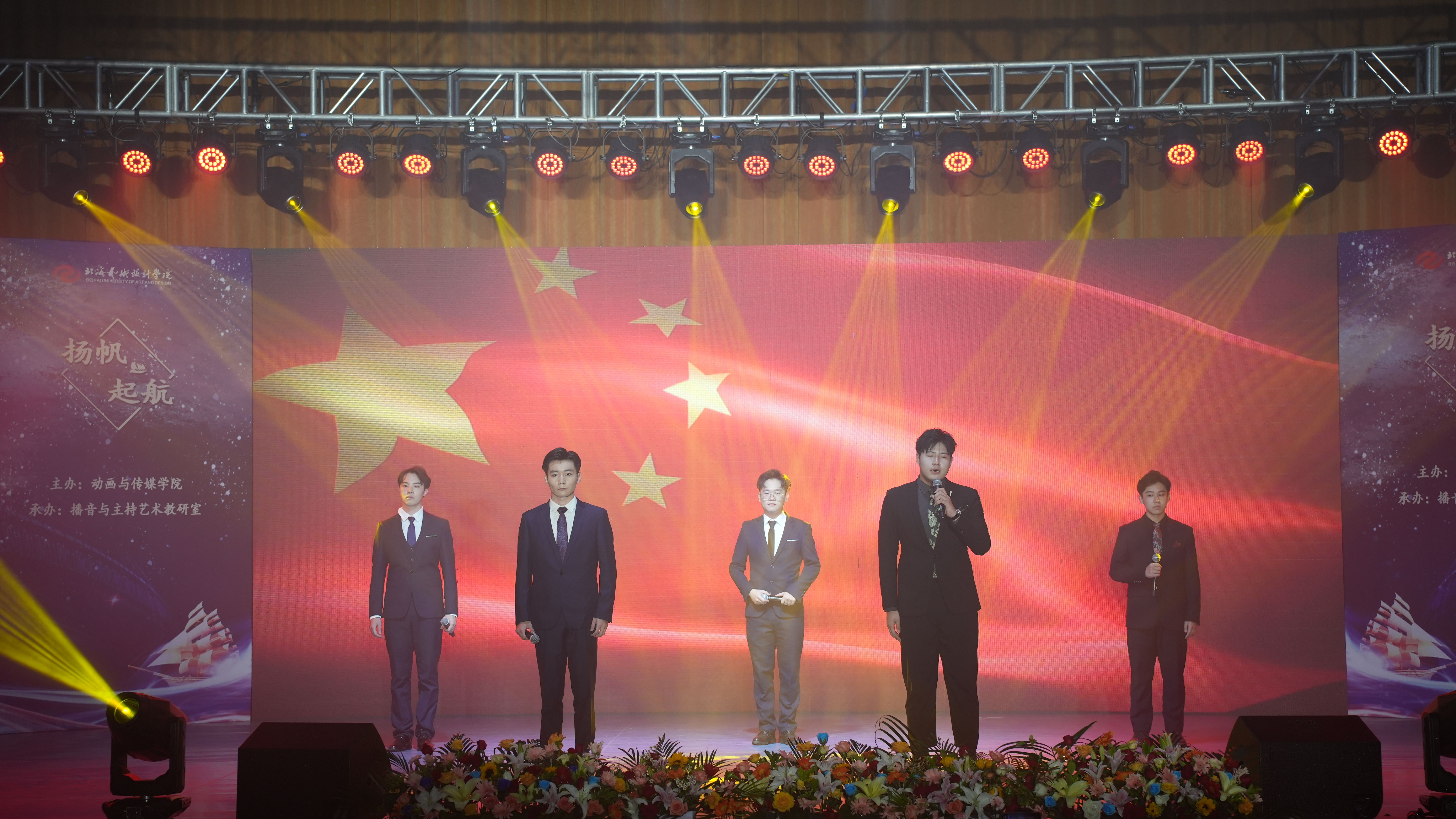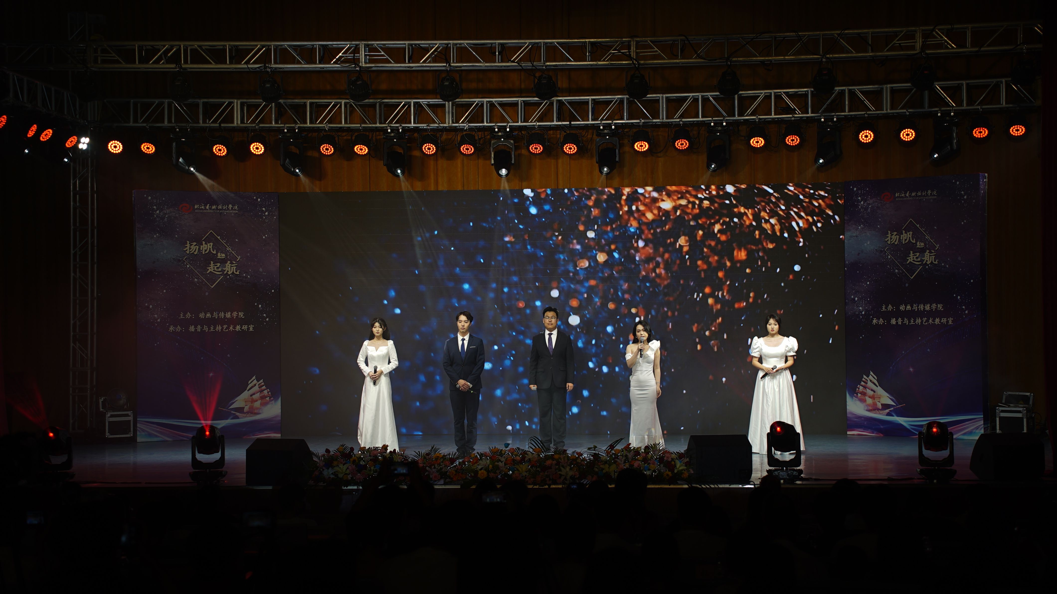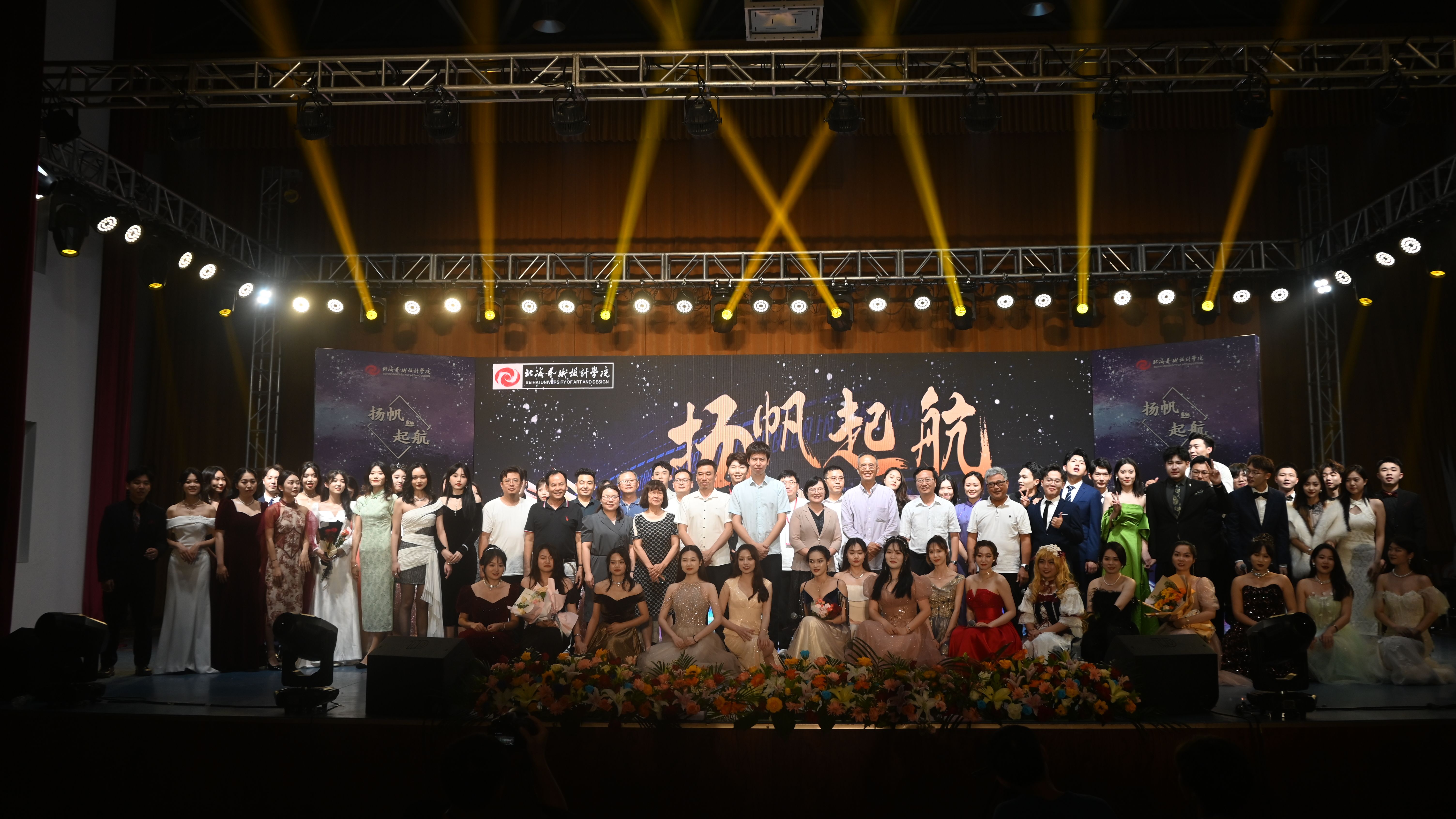 5月30日晚,由北海艺术设计学院动画与传媒学院主办,播音与主持艺术教研室承办的“扬帆起航”——2019级播音与主持艺术专业汇报演出在学校大礼堂举行。校党委书记张阳、校长卢新华董事长副校长郑念贻党委副书记副校长彭仁、党委副书记韦静月、副校长王斌、陶立阳、刘朝雄、马克思主义学院院长姜献生、公共部主任杨莹、动画与传媒学院党总支书记孙永辉、院长庞定坤、副院长杜博、杨红夷和校企合作单位北海广播电视台台长高峰等领导莅临现场指导,观看晚会的还有动画与传媒学院的师生们。