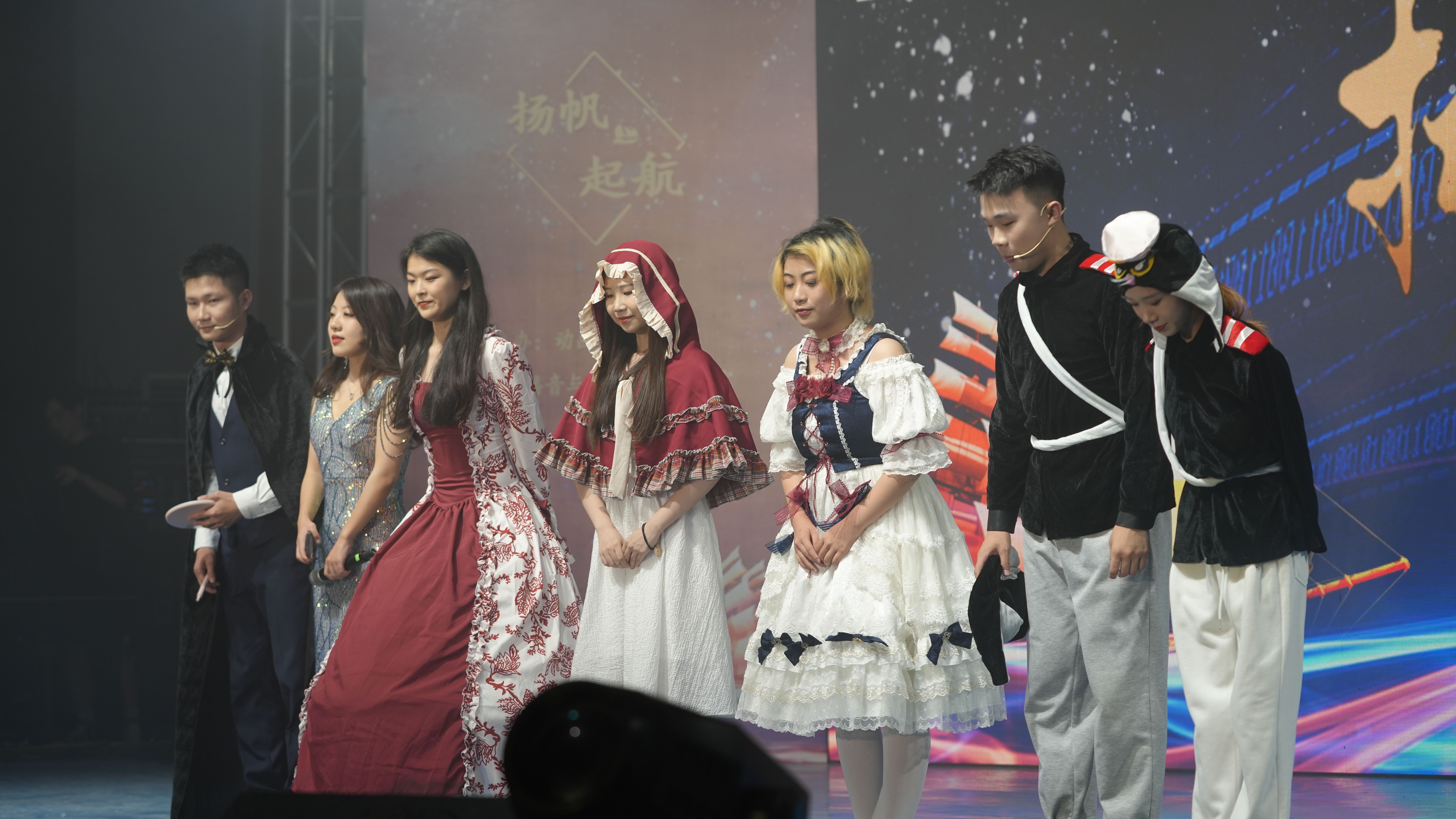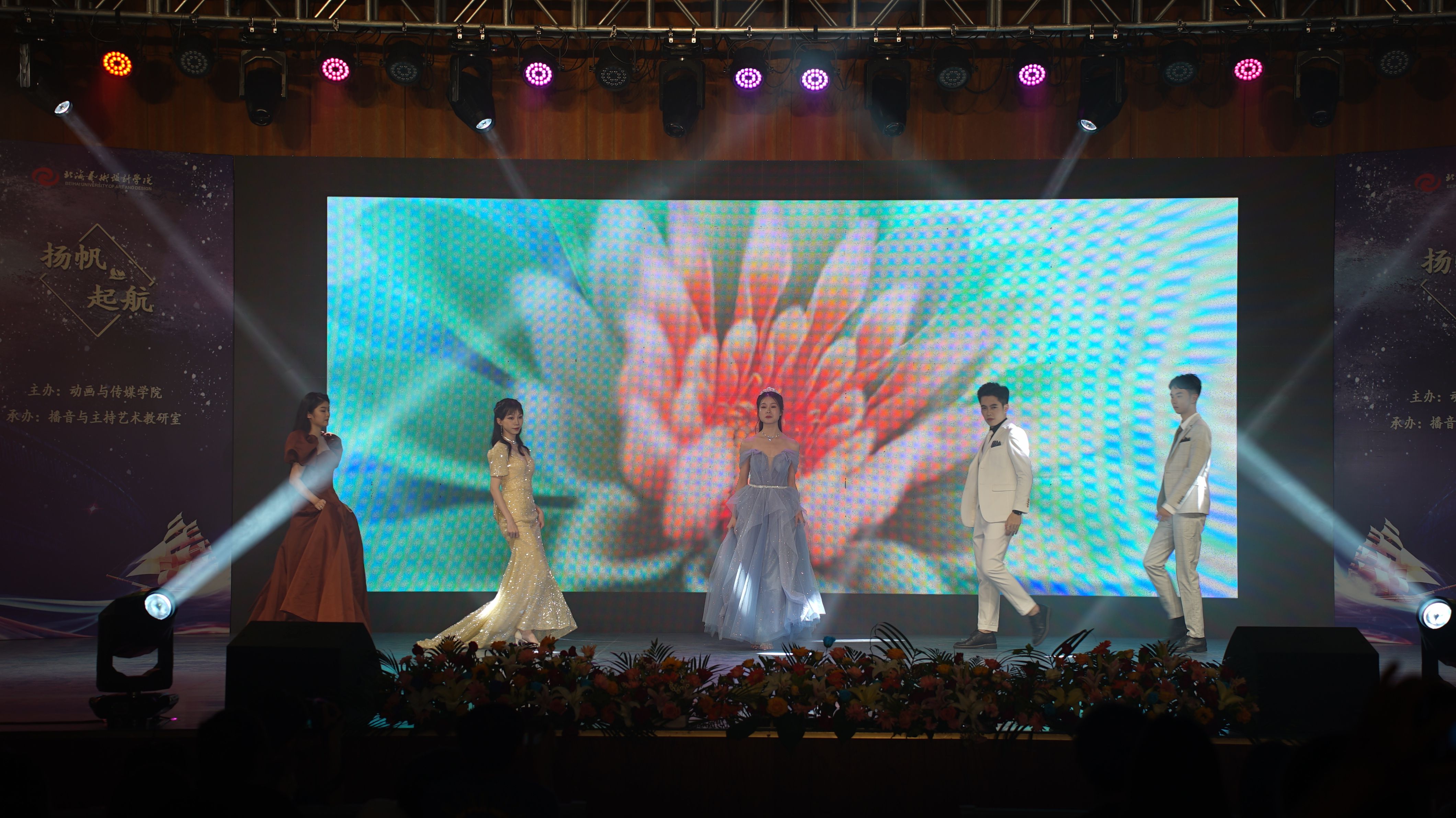 此次“扬帆起航”主题汇报演出之中,“青春”无疑是另一个有力的代名词。“青春”在学生们心中是一个美丽的时代,百花争艳,分外夺目。因此,学生们更是上演了一场华丽的T台走秀,来彰显属于他们的青春姿态。