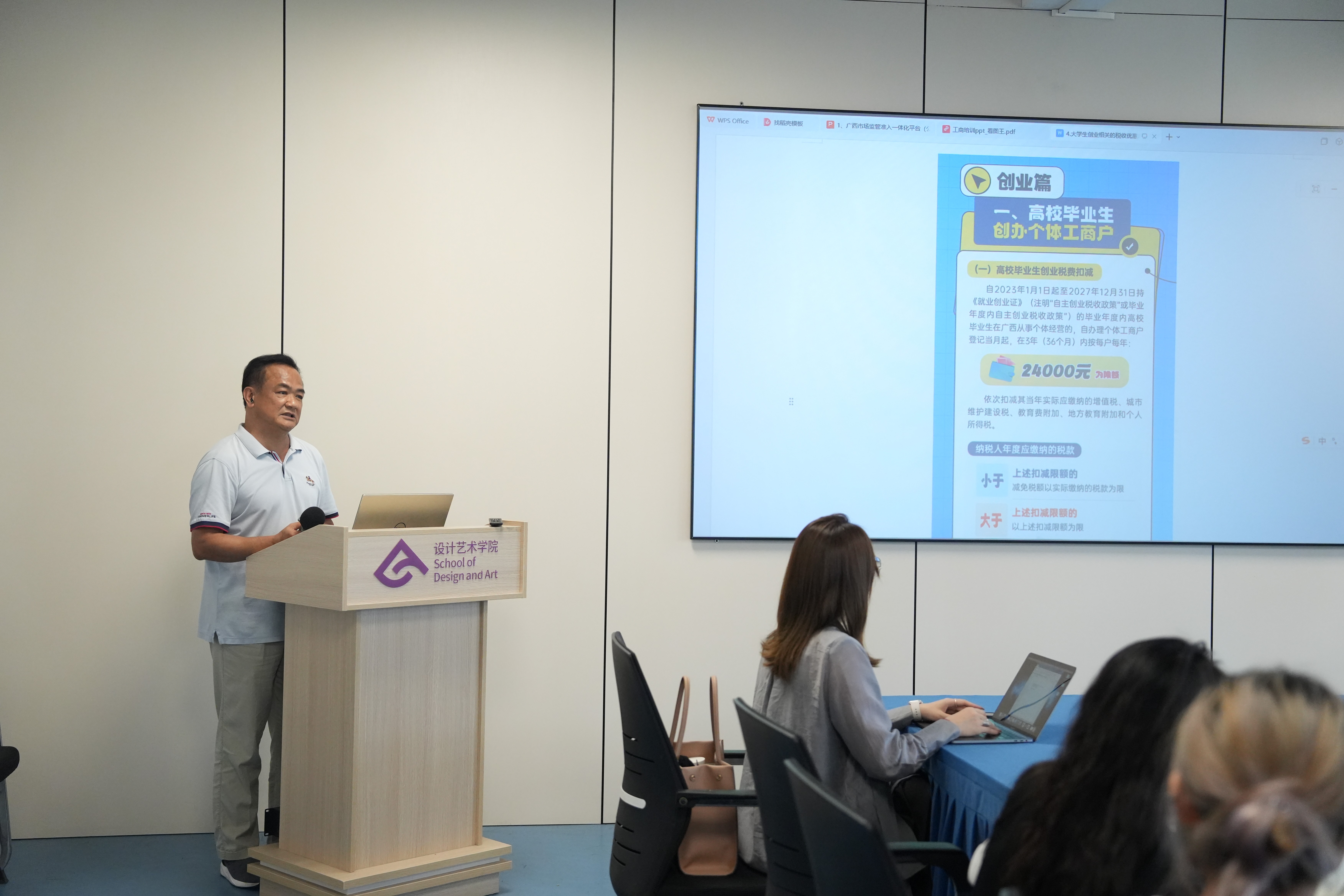 政策赋能双创路,专创融合启新程 ——设计艺术学院邀请国家税务总局北海市银海区税务局、北海市银海区市场监督管理局开展政策宣讲培训活动