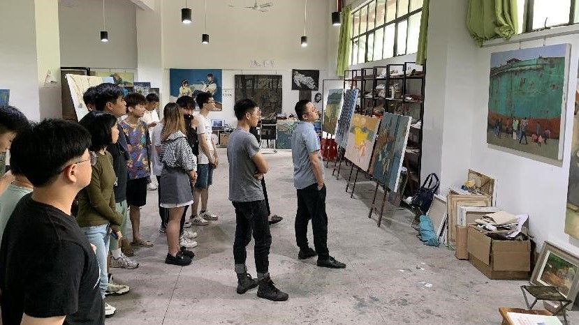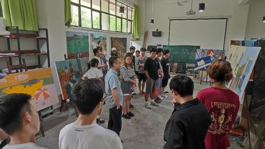 202269日,2021-2022年度第二学期末,美术学院组织绘画专业19级同学于西校区7栋教学区进行了创作课程的教学成果汇看。本次汇看评审小组由美术学院副院长龚为、美术学院综合办主任肖玺、美术学院综合办副主任陈建江、美术学院实验室主任袁志伟、绘画教研室副主任张湘中以及多位任课教师组成。各位老师对学生的作品进行了集体观摩并提出指导建议,对于即将离校的学生给予了相关事宜的嘱咐和未来学习生活上的鼓励。(张湘中 摄)