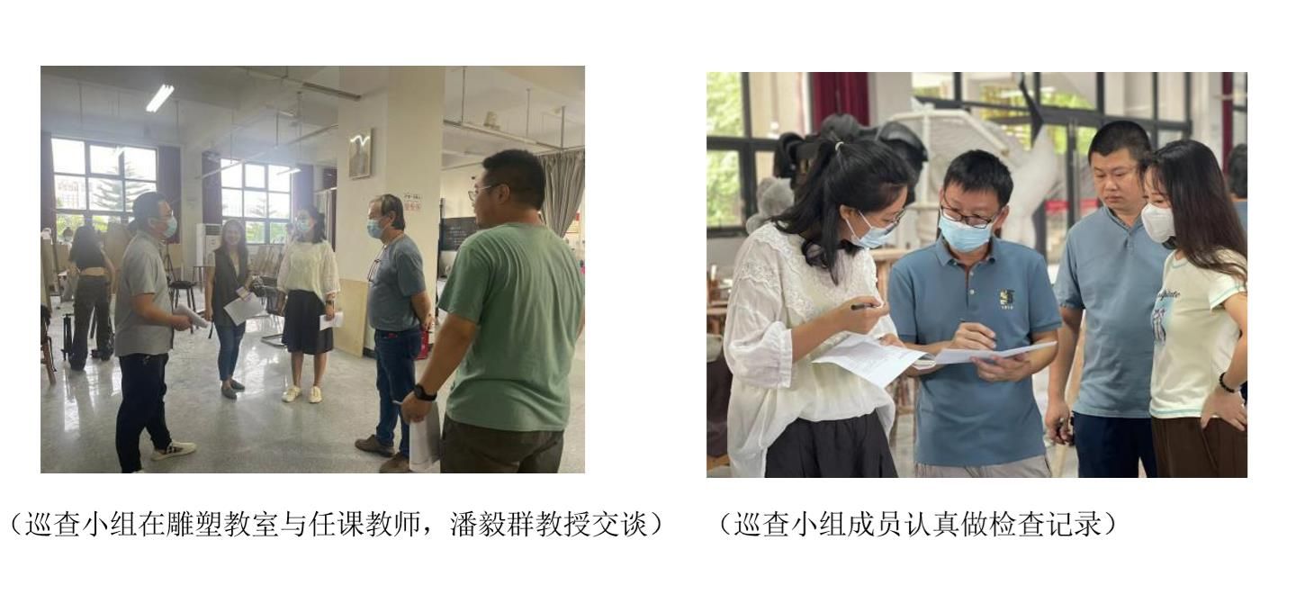 2022913美术学院开展了期初教学巡查工作。上午8点,由校级教学督导、院级教学督导团成员组成巡查小组,对2020级、2021级开学后的第一周线下课程,2022级新生的第一周线上课程进行了全面检查。