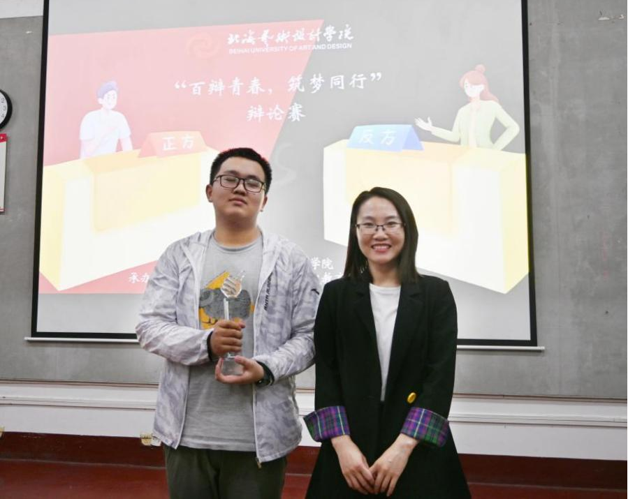为进一步提升大学生的思辦能力、人文素养和综合素质,培养团队协作和创新精神,锻炼学生的应变、表达能力,展现当代大学生良好的精神风貌,北海艺术设计学院人文教育学院于4月14日晚在东校区觉悟楼104成功举办“百辨青春,筑梦同行”主题辨论赛决赛。学校党委委员刘承初、人文教育学院院长熊秀峰、副院长李水亮应邀出席活动。