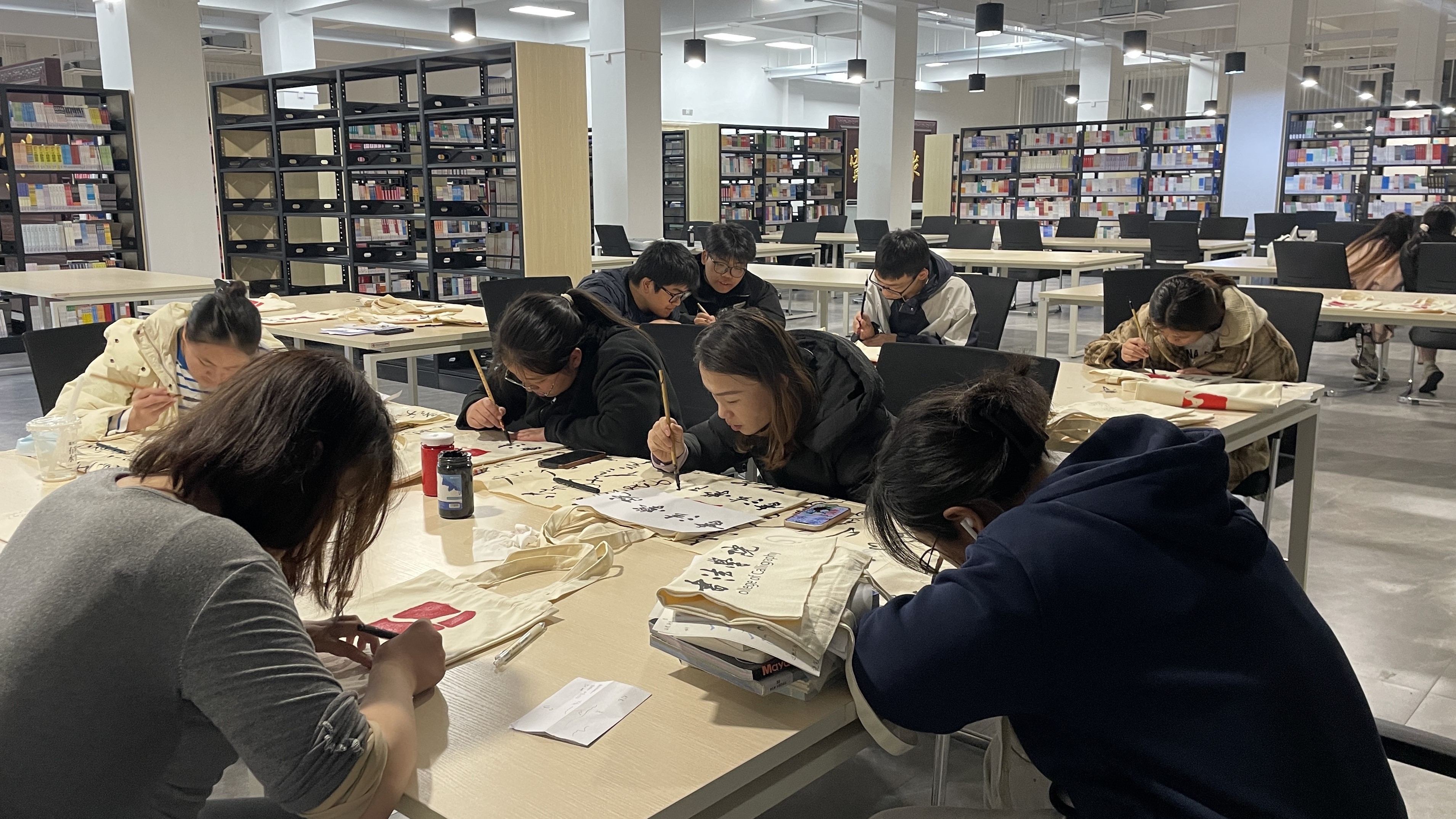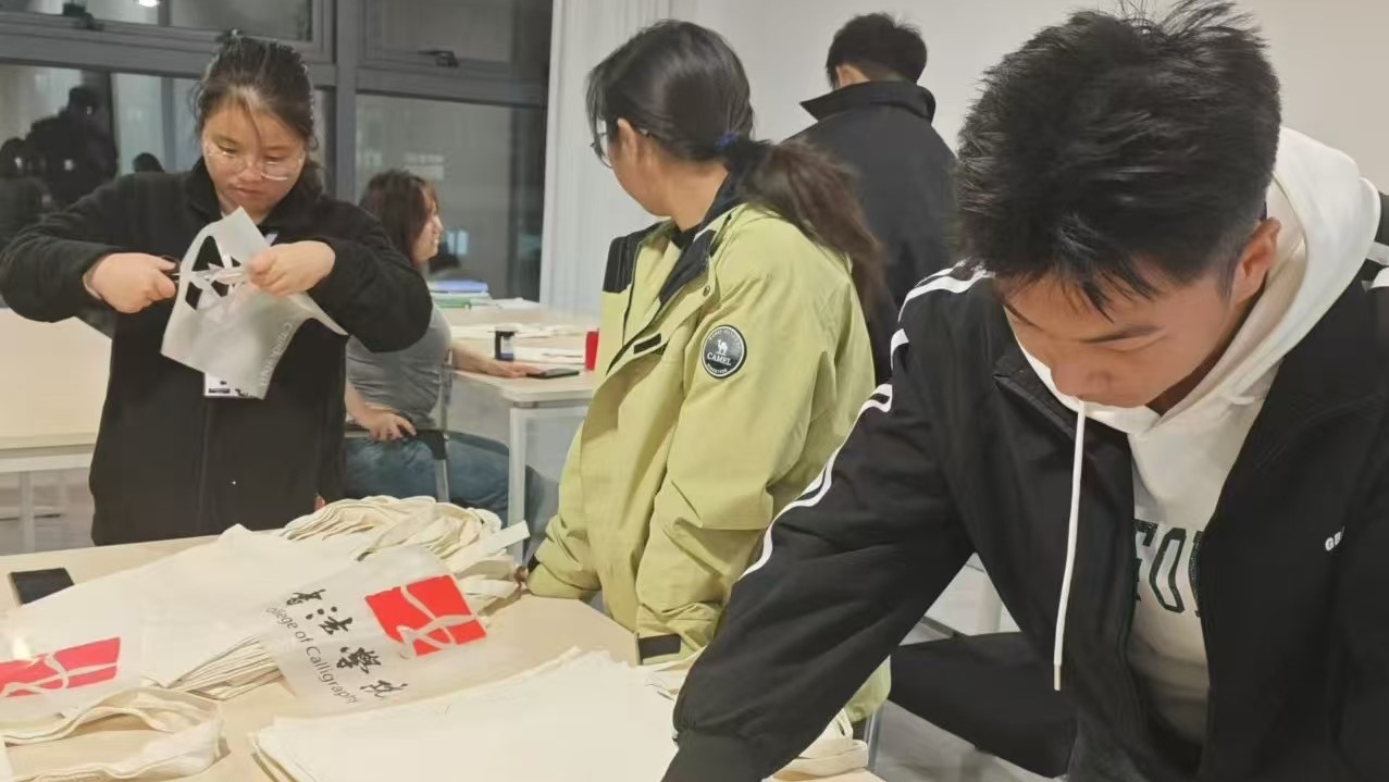 墨香流转布袋间,书法手绘情意浓——书法学院帆布包绘制活动