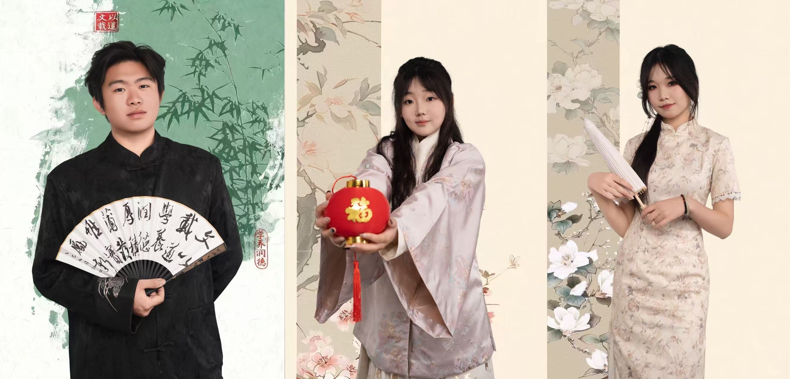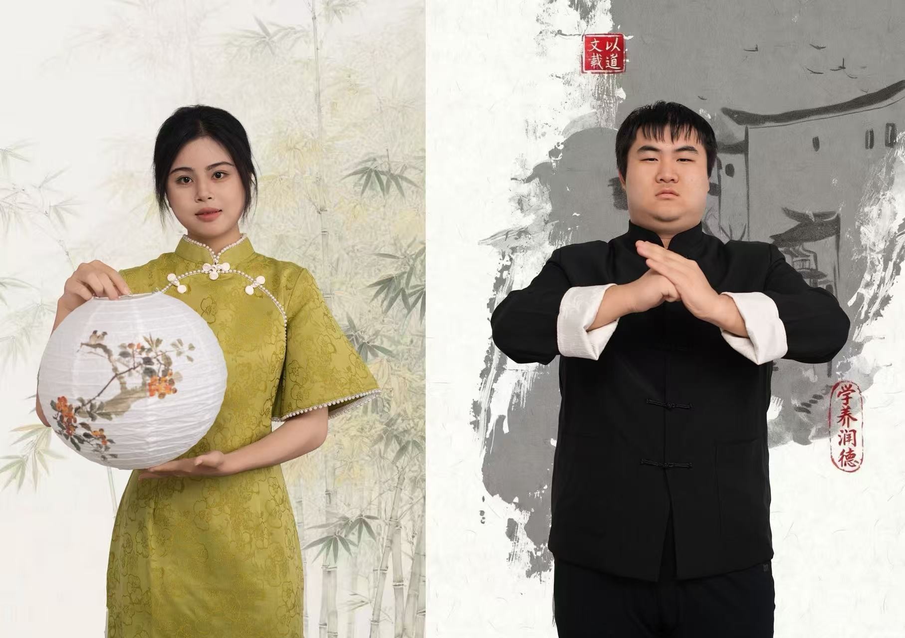 本次宣传照拍摄以中式美学为核心视觉导向,现场布置与服饰搭配深度融入传统元素。镜头前,学生干部们身着整洁古典服饰,或手持毛笔、典籍展现文院学子的书卷气,或并肩而立传递团队协作的凝聚力,或面带微笑彰显青年学子的朝气,每一个姿态都精心打磨,每一张面孔都洋溢着对学生工作的热忱精准营造出“书卷气”与“古典韵”交融的文化氛围。
