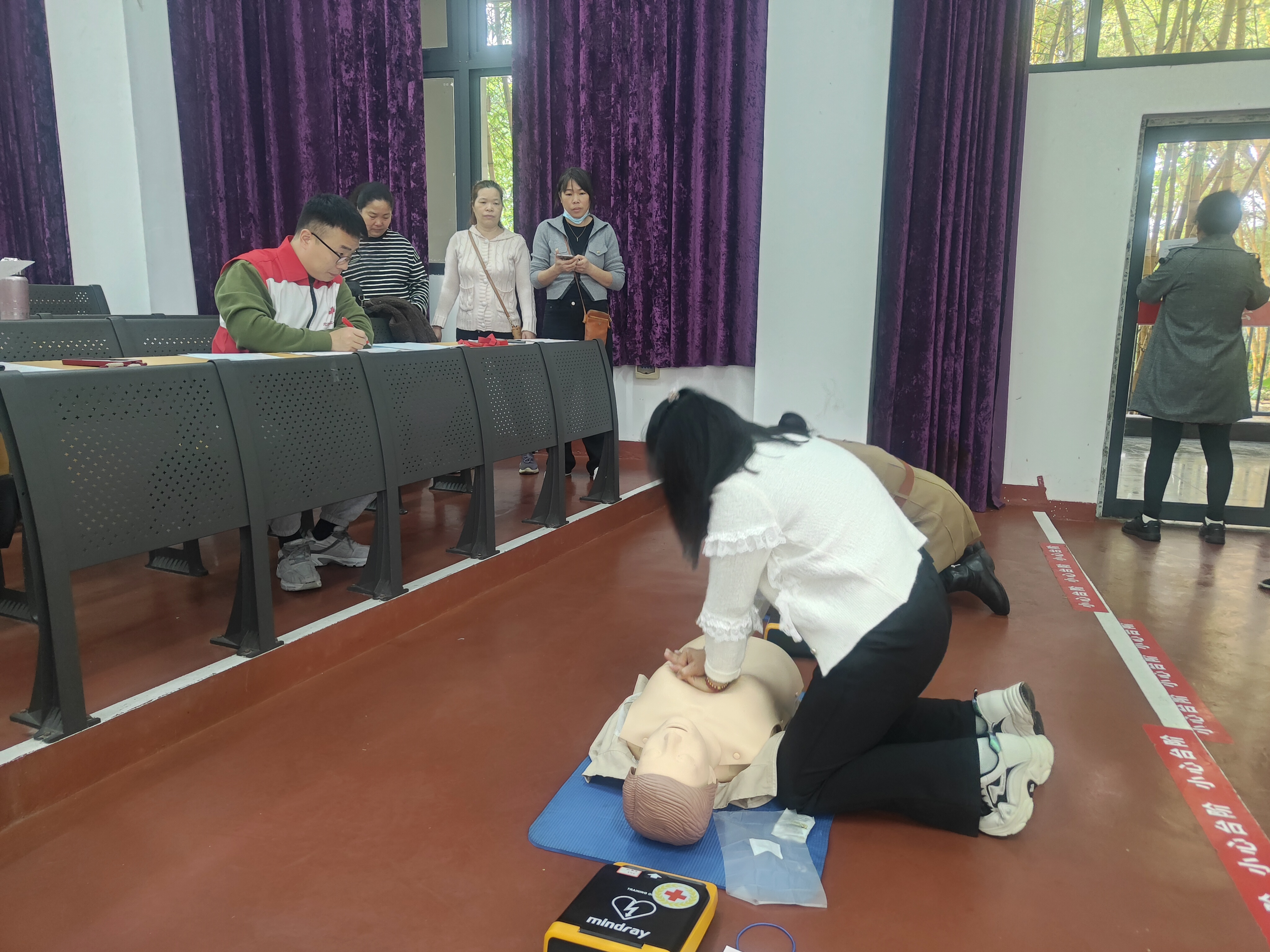本次培训的内容有红十字人道救护理念、心肺复苏基础知识及成人心肺复苏程序和操作、自动体外除颤器(AED)的使用以及气道异物梗阻的现场处理等。培训采用实践训练和线上理论考试的形式进行,确保师生们不仅能够扎实掌握理论知识,还能通过实践操作切实提升急救技能。