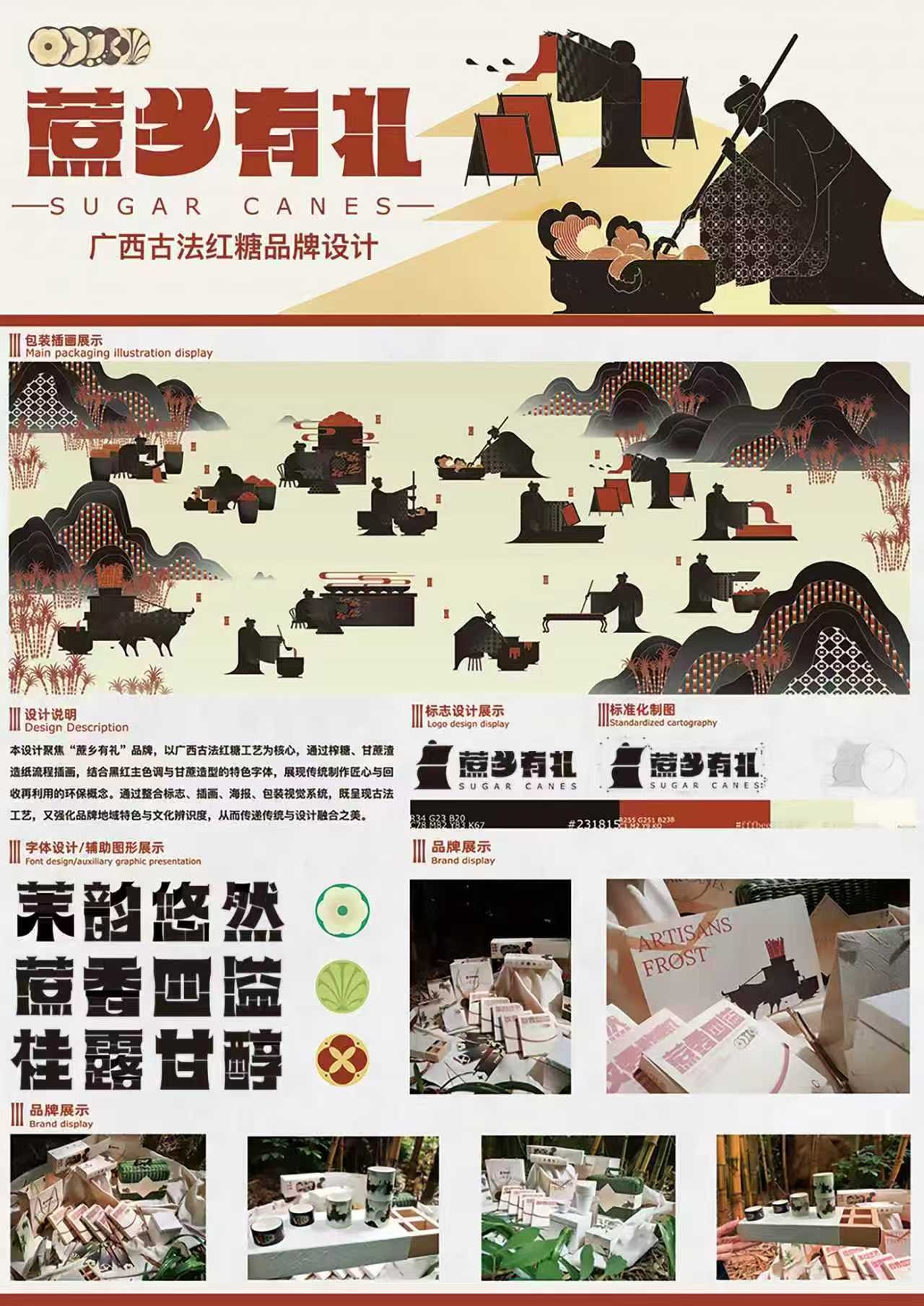 作品名:《“蔗乡有礼”广西古法红糖环保包装设计》 作者:敬明杰、李雯、袁志祥