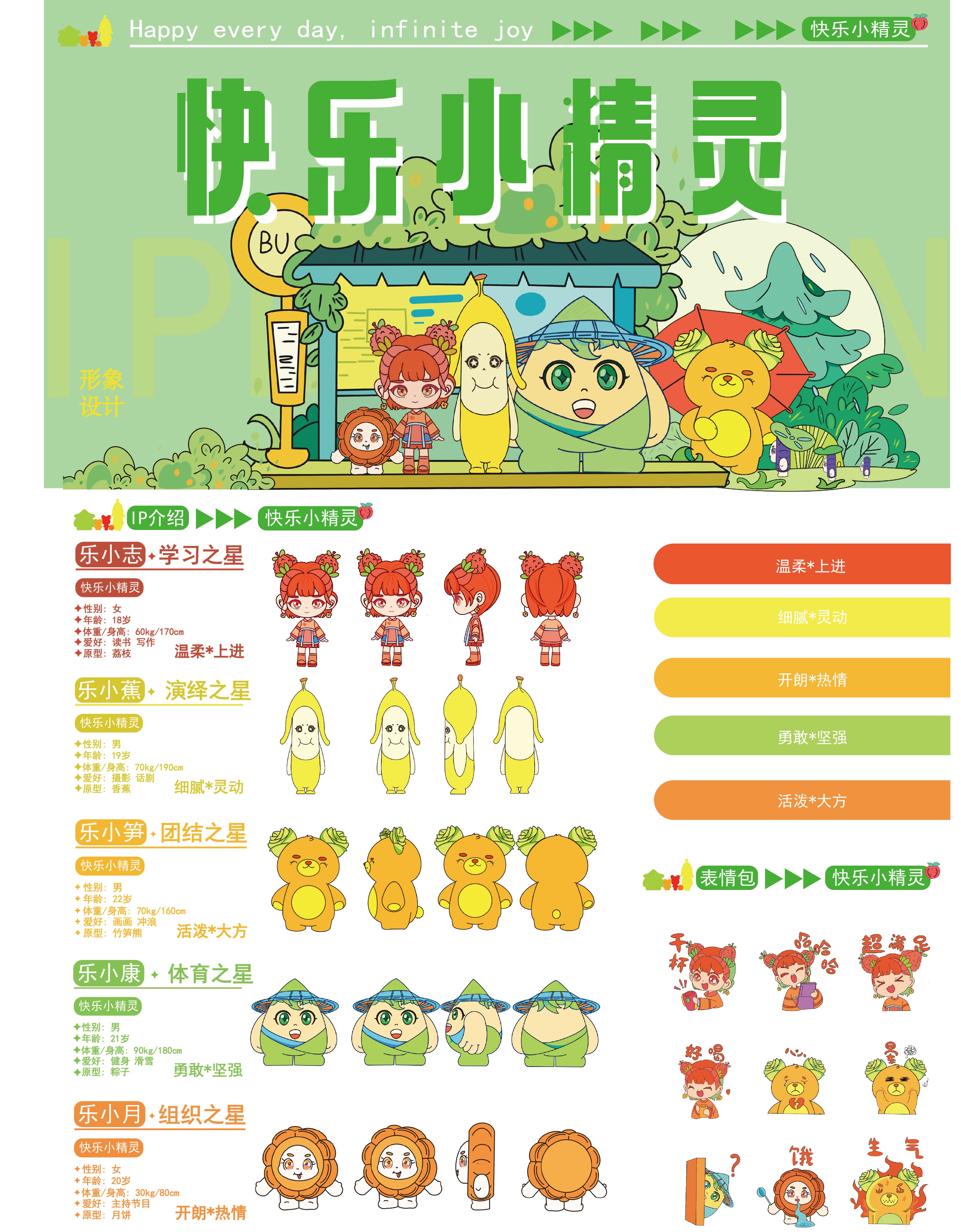 作品名:快乐小精灵IP形象设计      作者:张文浩 黄美丽