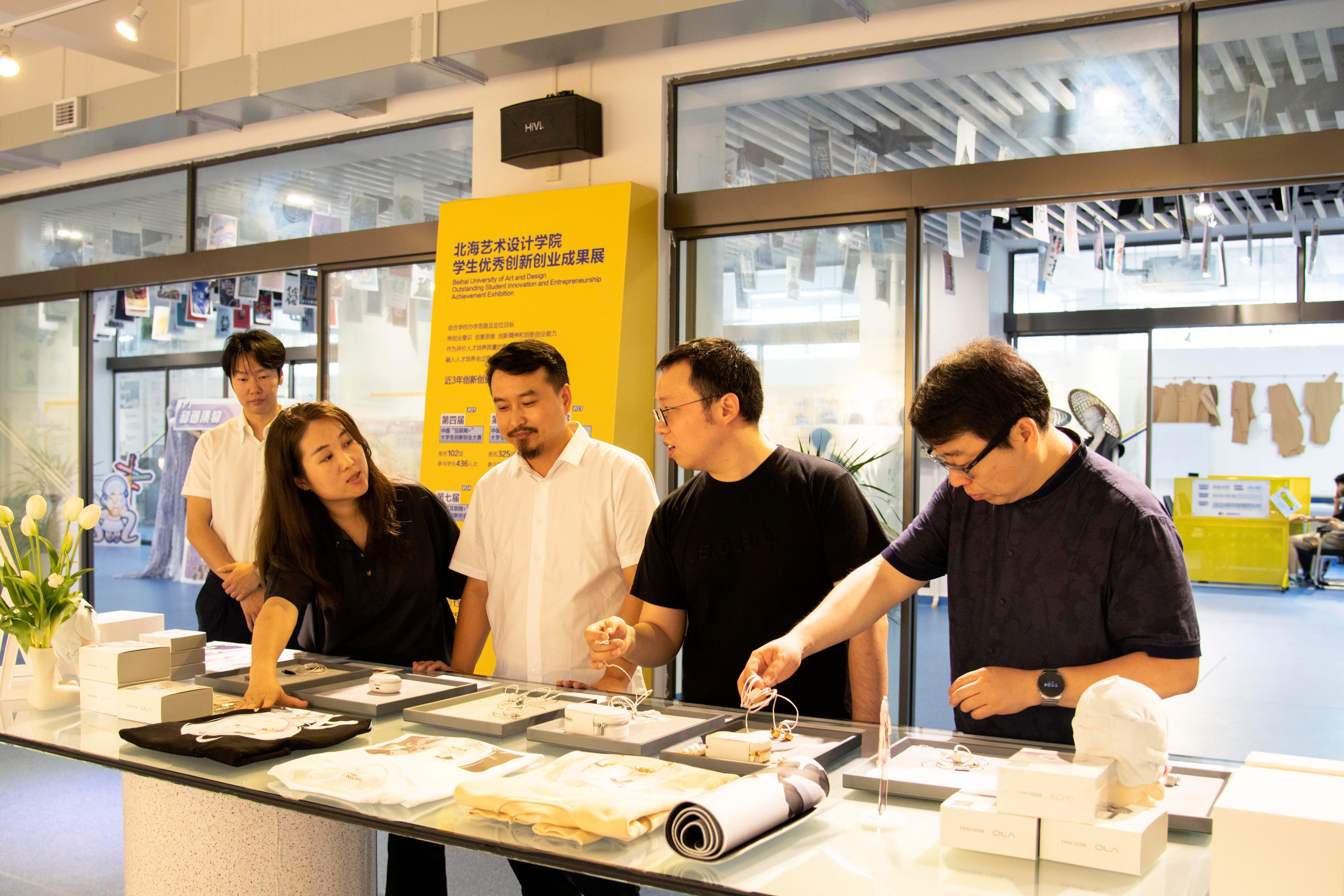随后,在设计艺术学院院长李林平创新创业学院院长云曼、实验室主任岳沛龙等领导老师的陪同下,UI中国即时设计一行参观走访创新创业学院云曼院长结合展品展示了学院工作室实验室建设校企合作及实践教学成果等方面内容