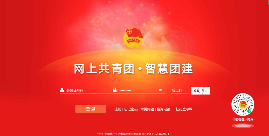 注意事项:若忘记密码,点击登陆页面右下方“忘记密码”选项,并联系原学校团委管理员生成重置密码验证码,即可重置密码。初次登陆,系统自动提示修改密码,仅需按提示进行操作即可。