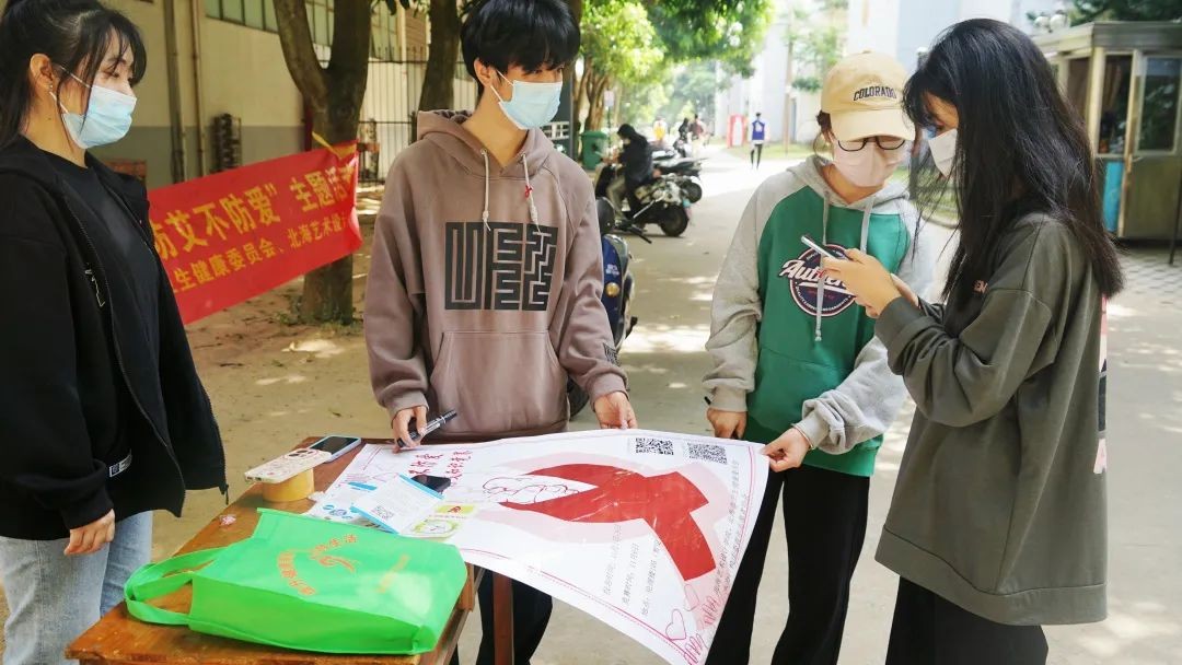 在热心的青志协志愿者的讲解与指导下,同学们扫码了解了更多的防艾知识,此举不仅增加了同学们的防艾知识,更让同学们意识到了防艾的重要性。