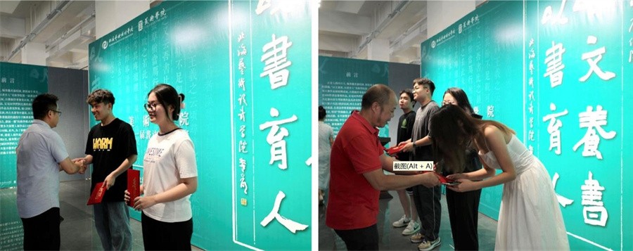 为激发学生创作动力与激情,鼓励学生深入艺术创作,此次展览活动共评选出一等奖2名,二等奖4名,三等奖6名,优秀奖15名。美术学院领导与书法学专业教授为获奖同学颁奖。