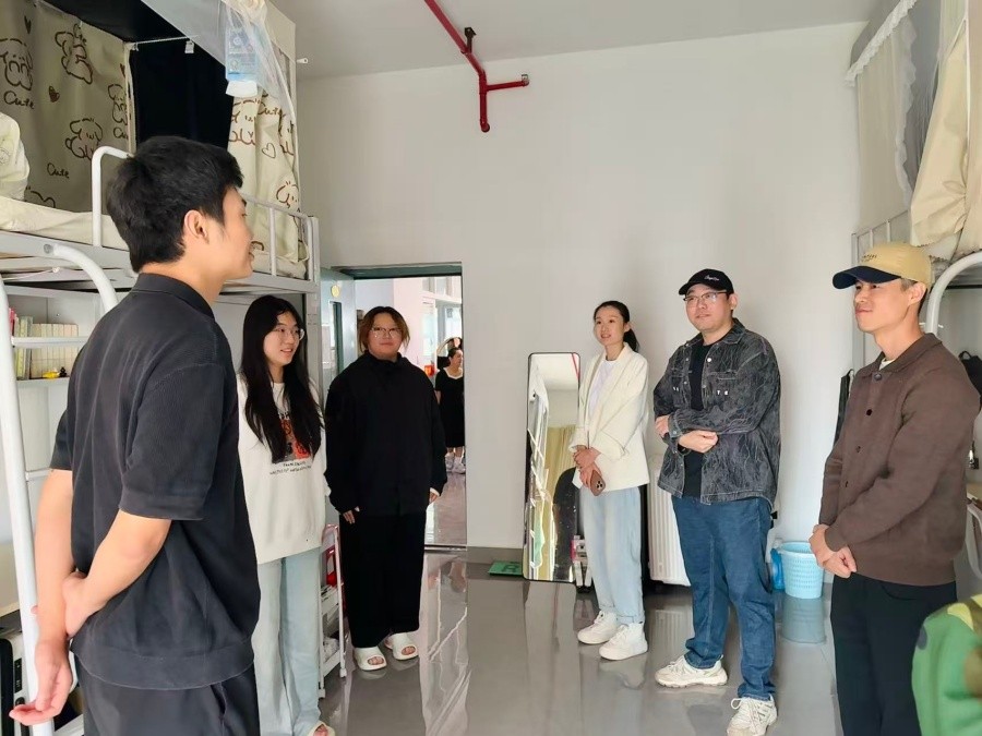 走访期间,走访团队一行轻步进入每一间新生宿舍,对学生顺利完成前期军训任务的表现予以肯定,并详细询问学生军训体验、身体健康状况、饮食起居情况及宿舍生活适应程度。“军训强度是否能够承受?”“宿舍水电使用是否习惯?”“与室友相处是否融洽?” 一句句关切的问询、一个个饱含温情的眼神,迅速拉近了与学生之间的距离,让大家深切感受到学院的关怀与温暖。