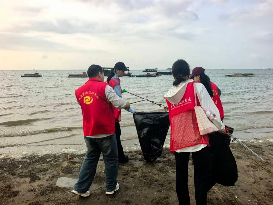 活动现场,志愿者手持垃圾夹、分类环保垃圾袋等专业工具对金滩沿线散落的塑料瓶、烟头、废弃渔网、泡沫碎屑等各类垃圾进行全面清理。针对沙滩石缝、防潮堤角落等清洁盲区,志愿者们俯身细查、逐一清理,确保不留卫生死角。在清洁作业的同时,志愿者们还向过往游客普及海洋生态保护知识,倡导公众践行绿色低碳生活,共同守护滨海生态环境。