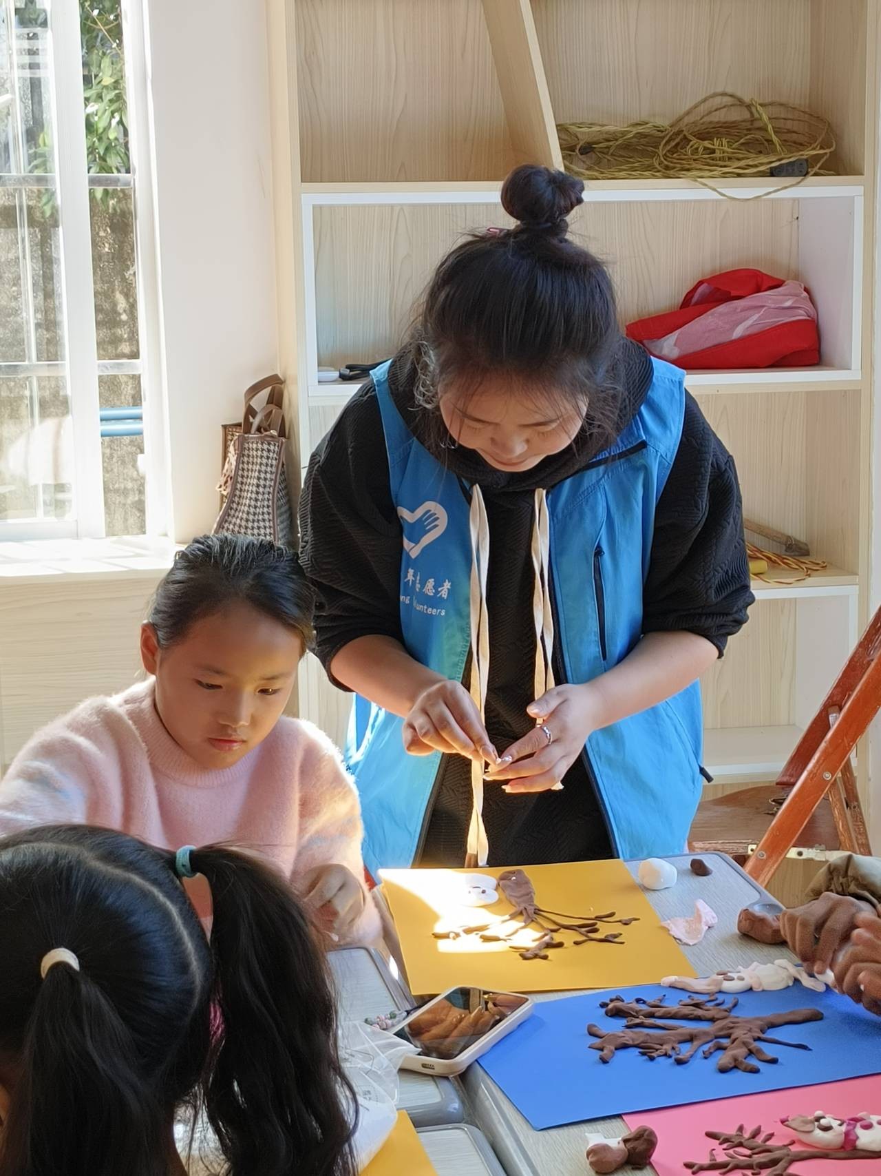 在赤东村,志愿者们开展了“巧手迎小雪,童心暖寒冬”创意手工活动。带着孩子们一起探索无限的创造力,让他们的想象力在这次课程中得到发展,展现出独特的艺术天赋。孩子们用粘土创造出了一幅幅属于自己的、独一无二的作品。