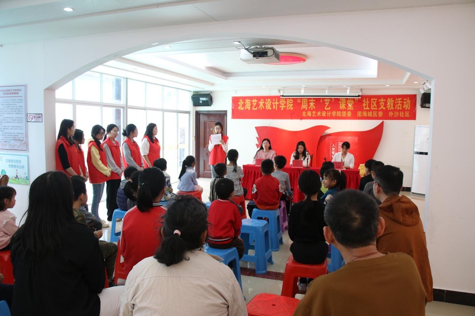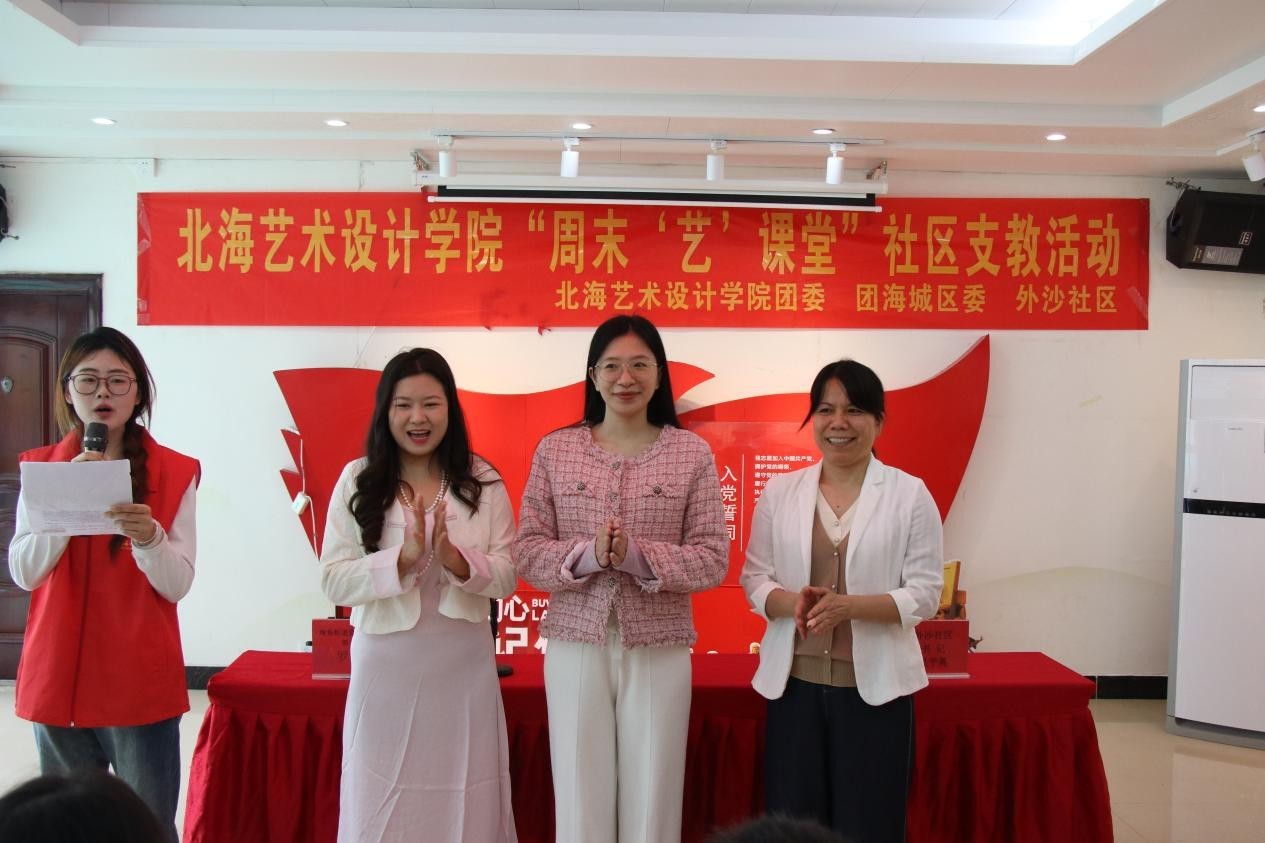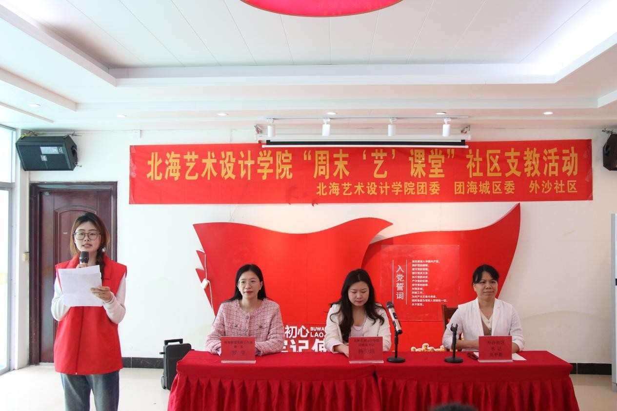 为贯彻落实习近平总书记关于深入开展学雷锋活动重要指示精神,进一步弘扬“奉献、友爱、互助、进步”的志愿者精神,传递温暖力量,营造校社互助友爱氛围,3月15日,我校“周末‘艺’课堂”社区支教活动启动仪式在外沙社区举行。出席本次活动的领导有海角街道党群工作部部长罗莹、外沙社区党委书记吴平英、我校团委副书记杨美琪,共有师生代表、支教志愿者、社区儿童及家长等50余人参与。