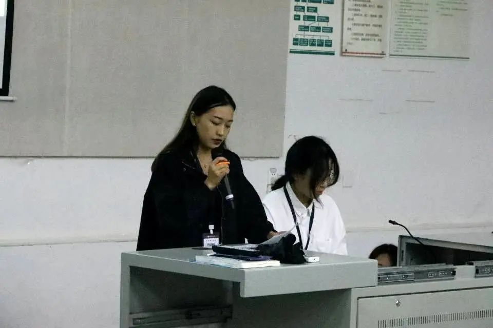 活动第五项:19、20级学长学姐上台进行分享学习经验。分别为:人文教育学院周可柔同学,动画传媒学院马妍同学。